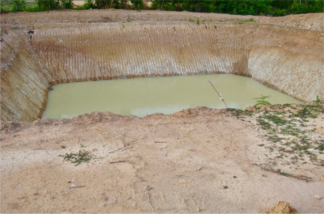 暑く厳しい乾季にも耐えられるよう、農園の隣に大きな池を作ります。
